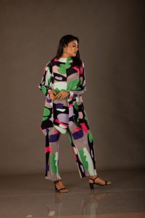 Korean Pleated abstract print ,imported fabric co-ordinate, two-piece set