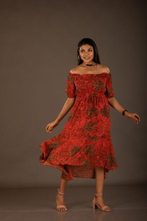 ₹2,750.00Select options This product has multiple variants. The options may be chosen on the product pageClearLMSXLXSPure chiffon,printed,floral, assymetric , high-low dress, with a wide neck. It can be worn as an off-shoulder as well as an on shoulder boat neck dress.