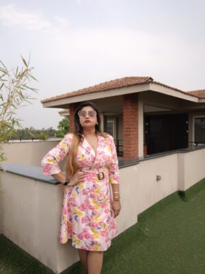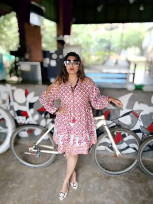 ₹2,350.00Select options This product has multiple variants. The options may be chosen on the product pageClear2XL3XL4XLLMSXLXSImported fabric,printed, short dress with a plunging neckline in a sweetheart neck