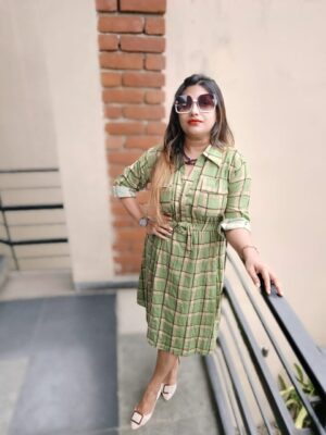 Knee length pure cotton with lining Checked dress